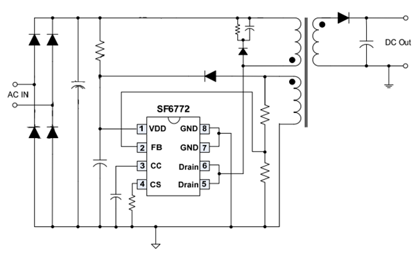 SF6772是准谐振(QR)模式的高精度原边反馈控制(PSR)恒压恒流(CV/CC)控制器。该系列驱动外部功率MOS管,非常适合低成本小功率充电器、适配器、和       LED照明场合。