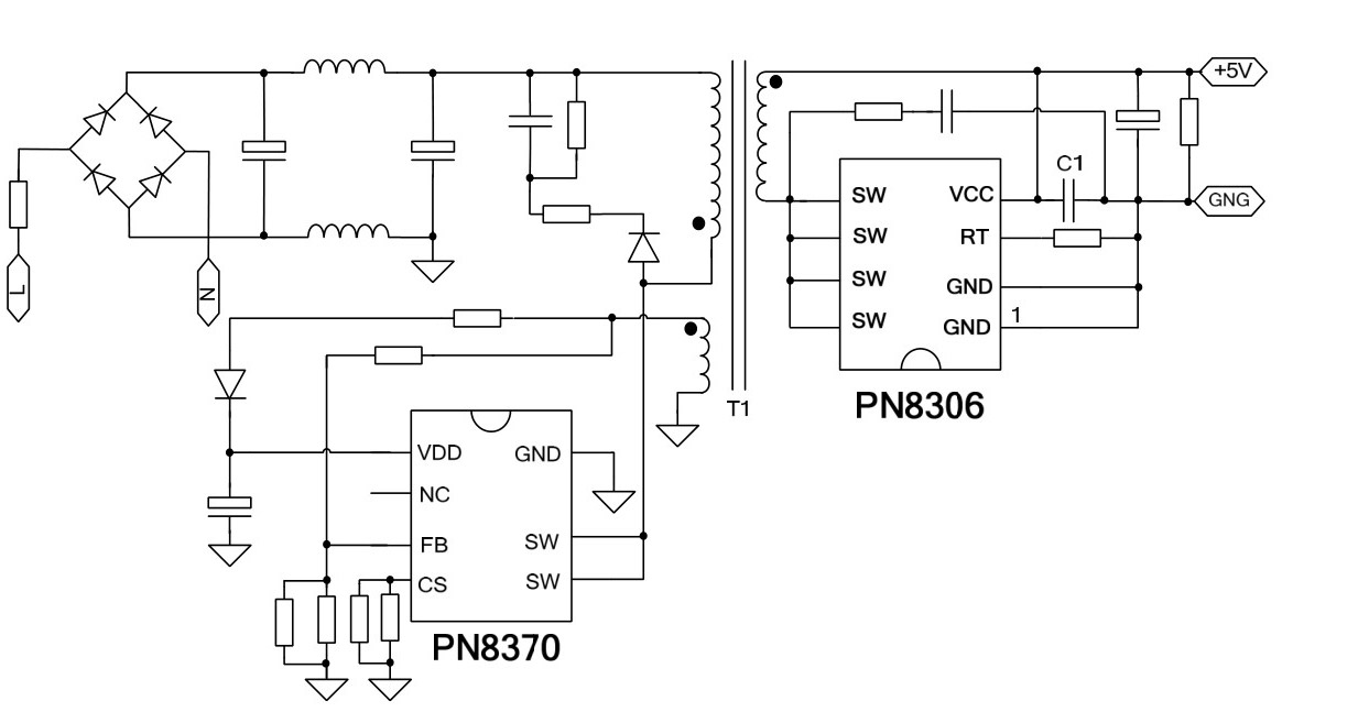 当前位置: 电源ic > 方案案例 > 充电器/适配器方案 > 5v开关电源芯片PN8370M+PN8306M 5V2A六级能效充电ic方案