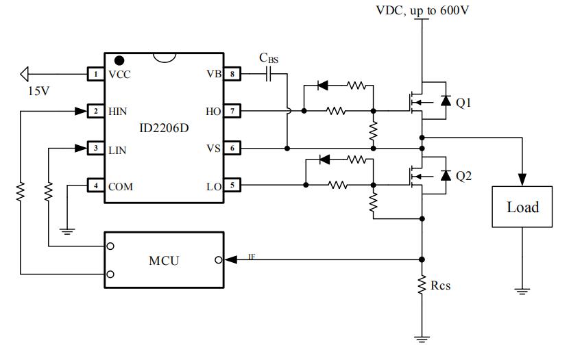 ID2206驱动可用于驱动2个N沟道功率MOSFET或IGBT构成的半桥拓扑结构。其浮地通道能工作在600V的高压下。是一款基于P衬底、P外延的高压、高速功率MOSFET和IGBT驱动芯片。