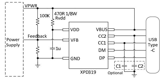 XPD319 USB Type-C PD 多协议控制器是一款集成 USB Type-C、USB Power Delivery(PD3.0)以及 PPS、QC3.0+/QC3.0/QC2.0 快充协议、华为 FCP 快充协议、三星 AFC 快充协议、BC1.2 DCP以及苹果设备 2.4A 充电规范的多协议端口控制器,为 AC-DC 适配器、车载充电器等设备提供高性价比的 USB Type-C 端口充电解决方案。