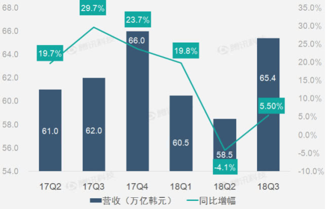 前几天,三星发布了第三季度的财报前瞻数据,财报显示,三星电子当季净利润达到13.1万亿韩元(约合115亿美元),较去年同期的11.1万亿韩元增长17.5%;营收达到65.4万亿韩元,较去年同期的62万亿韩元增长5.5%,其主要业绩来源于DRAM内存和NAND闪存芯片上,第三季度半导体业务的运营利润贡献将会突破80%,随着存储芯片市场风向发生变化,三星享受的红利似乎已经到头了。