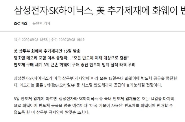 据报道,随着特朗普政府加强对华为的制裁,三星和 SK 海力士将于 9 月 15 日终止与华为的交易,停止向华为供应半导体,不但是存储芯片,就连 5G、移动通信 (AP)等系统芯片也将无法供应,不仅波及到手机,整个消费者业务乃至云业务都会受到波牵连。
