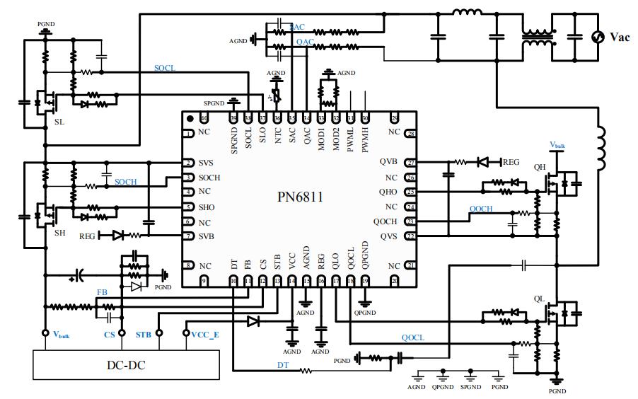 PN6811图腾无桥pfc控制芯片典型电路图