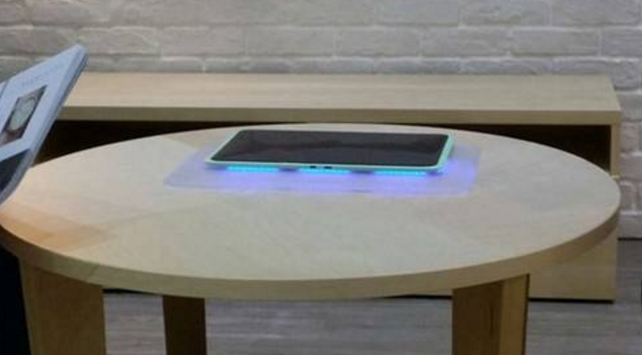 据介绍,充电组件来自发射端供应商高晟腾。只要将高晟腾的设备安装在桌面下方,通上电源,就生成了一个磁共振无线充电环境,整个桌面上方都变成一块充电板。手机、平板电脑或其他移动终端只需安装带有接收器的外壳或保护套,放置在桌面上就能进行充电。采用其无线充电设备充电的速度大约为普通电线充电的70~80%,可供多台设备同时充电。