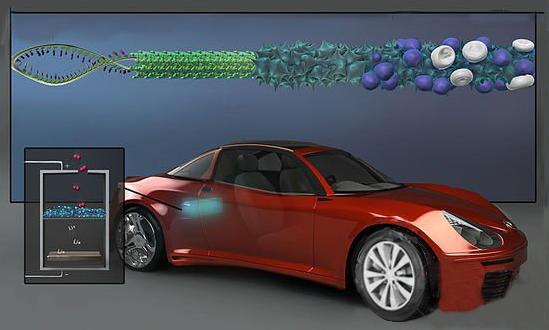 在锂-空气电池中放入M13病毒,再加入金属钯作为催化剂,通过电池中金属分子的反应,提升了锂电池的能量密度,从而延长电动车的续航里程。