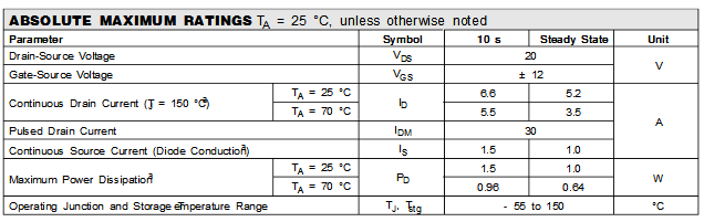 9926低压mos绝对最大额定值:
