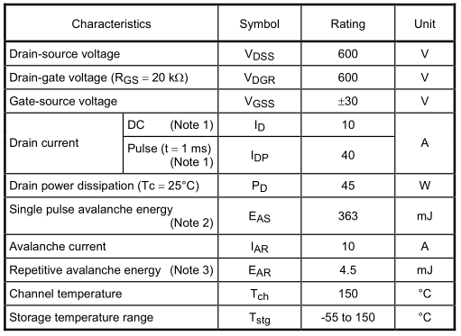 TK10A60D场效应晶体管MOS管参数: