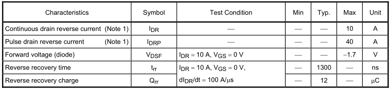 TK10A60D电气特性(Ta = = 25°C):