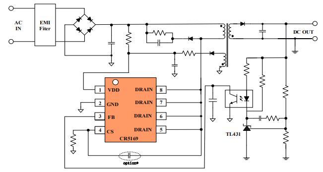 CR5169 pd控制芯片是一款高集成度、低待机功耗的 CCM+PFM 混合电流模式 PWM 控制开关。CR5169 轻载时会降低频率,最低频率 22kHz 可避免音频噪声。CR5169 提供了完整的保护功能,如 OCP、OTP、VDD_OVP、UVLO 等。软启动功能可以减少系统启动时 MOSFET 的应力,前沿消隐时间简化了系统应用。通过频率抖动和软驱动电路的设计,降低开关噪声,简化了 EMI 设计,CR5169 pd控制芯片还提供 VDD 电压从 8.5V 至 36.5V 更宽的工作范围。CR5169提供 SOP-8L 的封装。